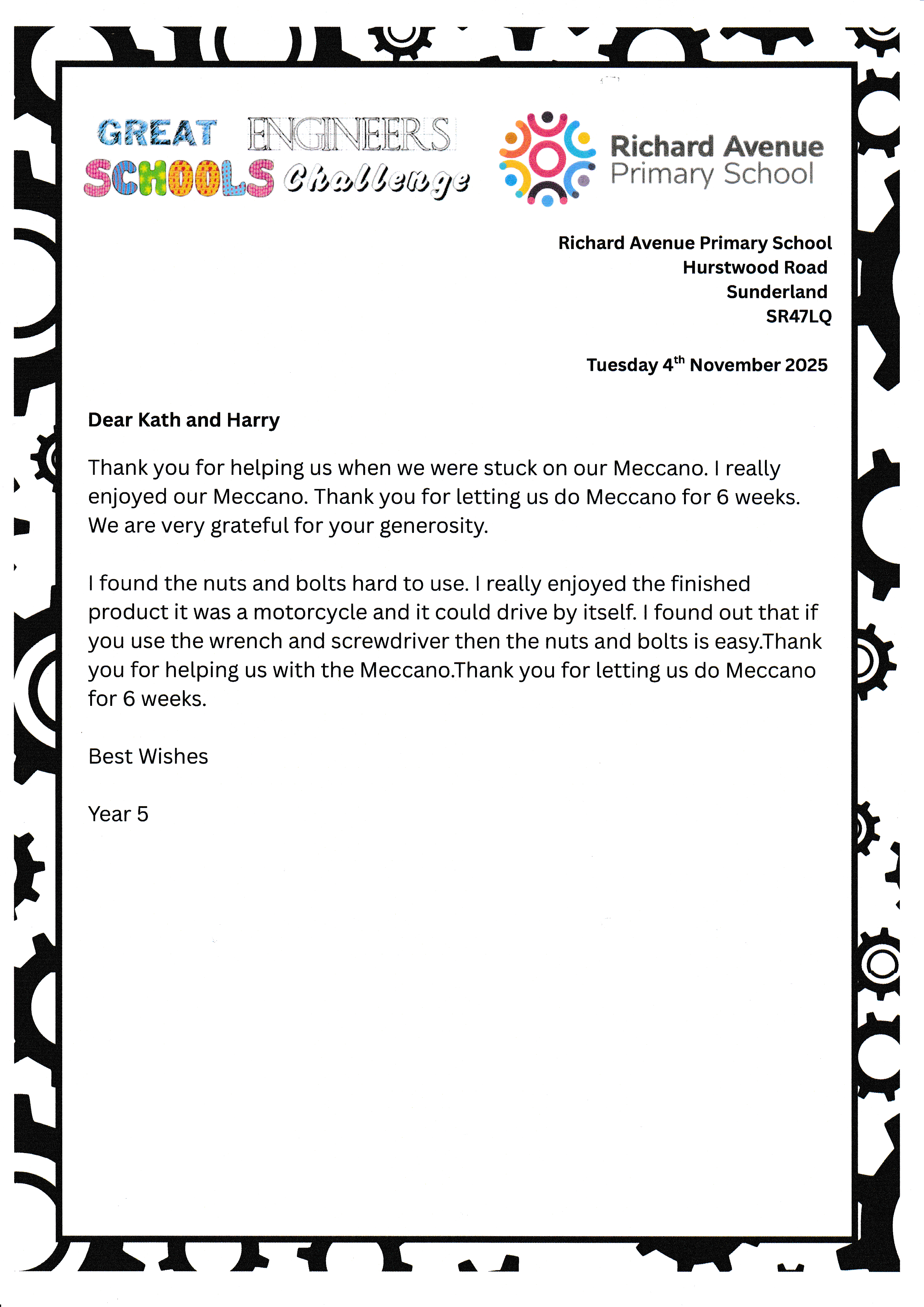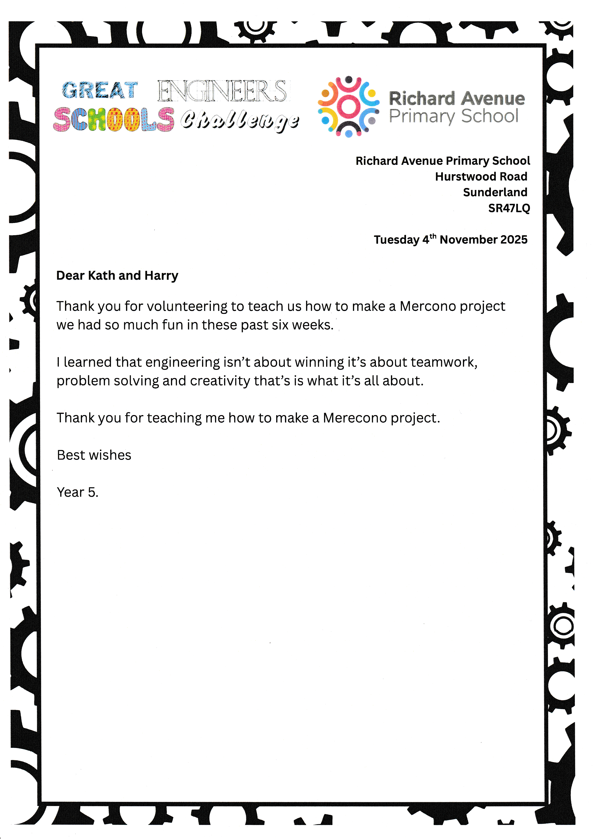 Richard Avenue - Thank you letters.