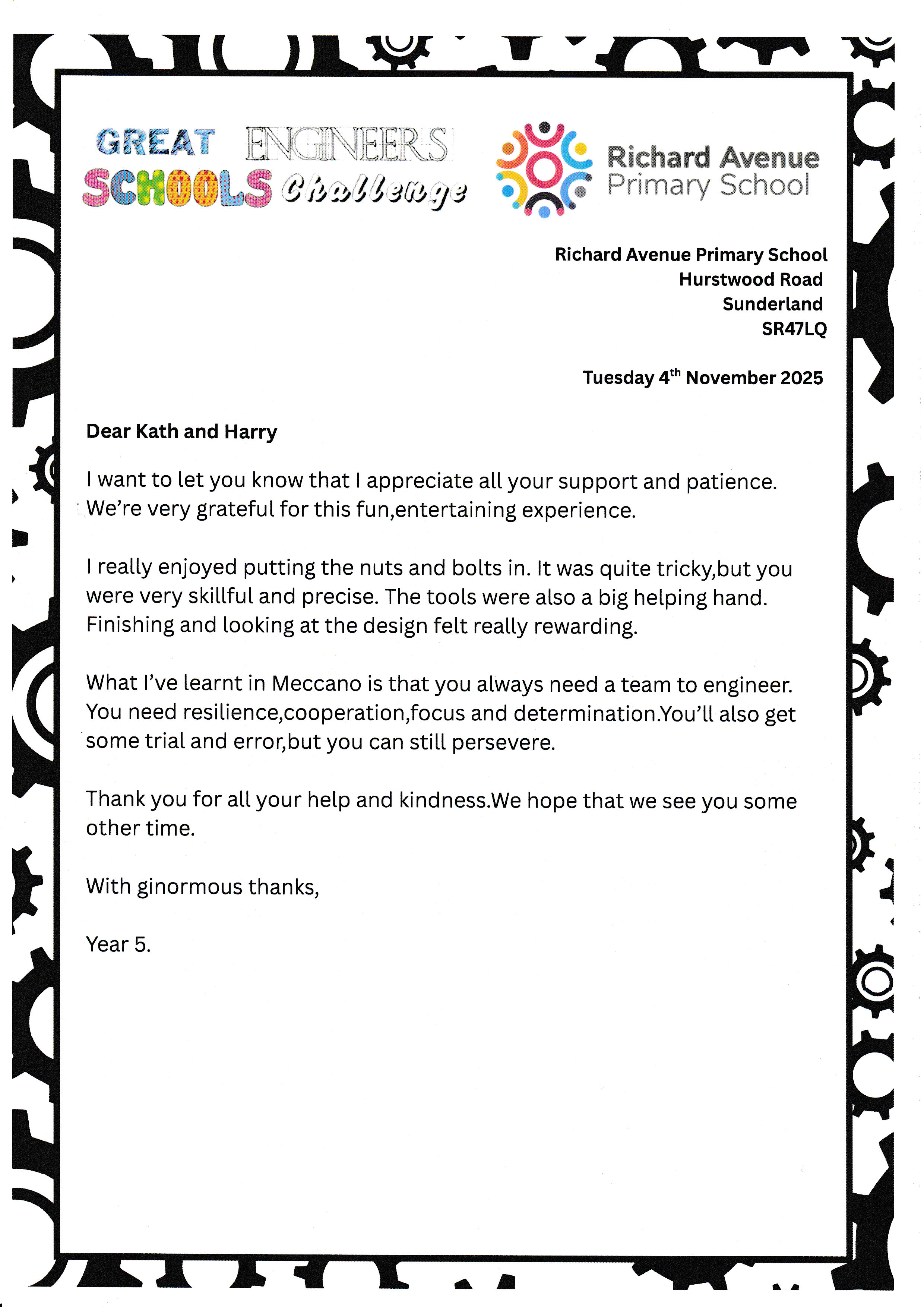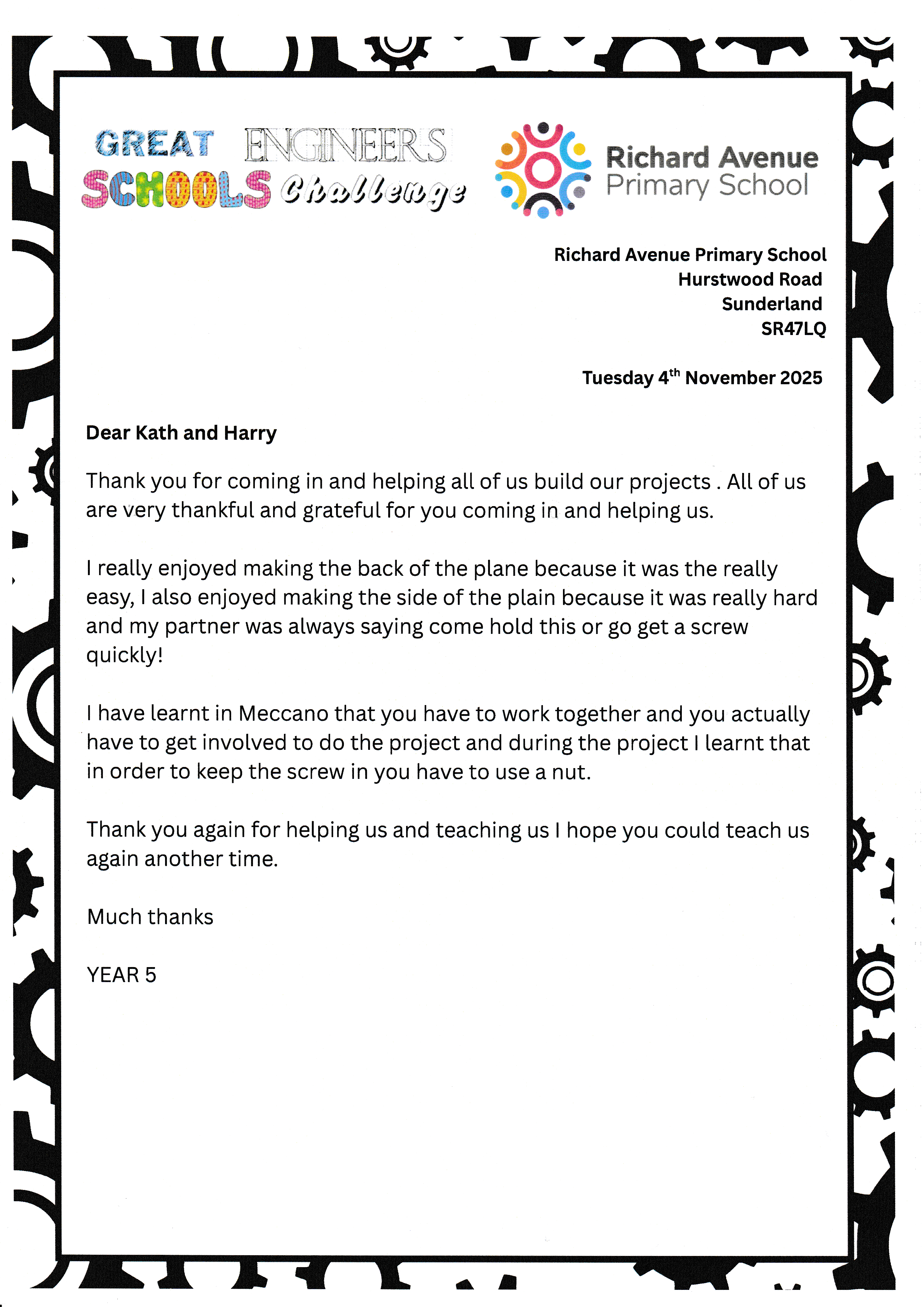 Richard Avenue - Thank you letters.